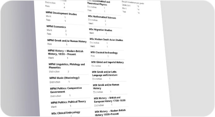 POSTGRADUATE RESULTS MSc Mathematical and MSt Music (Performance) Computational Finance Distinction 1 Bachelor of Civil Law Distinction 1 Merit 1 MSt Women’s Gender and Merit 1 Sexuality Studies Pass 3 MSc Mathematical Modelling Distinction 1 and Scientific Computing BPhil Philosophy Pass 1 Pass 2 Results breakdown per grade: MSc Mathematical and Distinction 19 Medicine – Clinical Theoretical Physics Distinction 1 Distinction 1 Merit 14 Pass 4 Pass 1 Pass 16 MPhil Development Studies MSc Mathematical Sciences Merit 1 Distinction 2 Pass 1 Merit 2 MPhil Economics MSc Migration Studies Merit 2 Merit 1 Pass 1 MSc Modern South Asian Studies MPhil Greek and/or Roman History Distinction 2 Pass 1 Merit 1 MPhil History – Modern British MSt Classical Archaeology History, 1850 - Present Pass 1 Merit 1 MSt Global and Imperial History MPhil Linguistics, Philology and Distinction 1 Phonetics Distinction 2 MSt Greek and/or Latin Language and Literature MPhil Music (Musicology) Distinction 1 Distinction 1 MSt Greek and/or Roman MPhil Politics: Comparative History Government Distinction 1 Distinction 1 MSt History - British and MPhil Politics: Political Theory European History 1700-1850 Merit 1 Distinction 1 MSc Clinical Embryology MSt History - Modern British Pass 1 History 1850-Present MSc Economics for Development Merit 1 Distinction 1 MSt Linguistics, Philology and Merit 1 Phonetics Pass 1 MSc Global Governance and Diplomacy MSt Modern Languages Merit 1 Distinction 1 61
