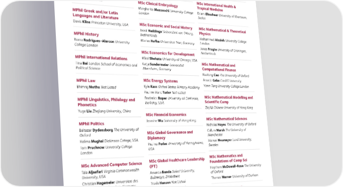 MPhil Classical Archaeology MSc Biodiversity, Conservation MSc in Applied Digital Health Madelyn Mezzell Texas State University- and Management Rachel Chae Massachusetts Institute of San Marcos, USA Naga Sathish Gidijala Andhra University, Technology, USA Visakhapatnam, India MPhil Economic and Social History MSc in Applied Digital Health Ilina Logani Columbia University, USA MSc Clinical Embryology Ashfiya Pirani University of Waterloo, Iryna Ivanova Taras Shevchenko State Canada MPhil Economics University of Kiev, Ukraine Oliver Ou London School of Economics MSc International Health & and Political Science MSc Clinical Embryology Tropical Medicine Margherita Mazzaschi University College Eslam Elbasheer University of Khartoum, MPhil Greek and/or Latin London Sudan Languages and Literature Davis Kline Princeton University, USA MSc Economic and Social History MSc Mathematical & Theoretical Joost Haddinga Universiteit van Tilburg, Physics MPhil History Netherlands Mohammed Alsaleh University College Marius Hafke Universitat Trier, Germany London Roma Rodrigues-Alarcon University Jonas Frugte University of Groningen, College London Netherlands MSc Economics for Development MPhil International Relations Miral Shehata University of Chicago, USA Katja Sundermeier Universitat MSc Mathematical and Tina Bai London School of Economics and Mannheim, Germany Computational Finance Political Science Ruotong Cao The University of Oxford MPhil Law MSc Energy Systems Amarjit Gaba Cardiff University Kyle Kass United States Military Academy Yimin Tang University College London Bhimraj Muthu Not Listed Pauline Marc Tudor Not Listed MPhil Linguistics, Philology and Frederick Roper University of California, MSc Mathematical Modelling and Phonetics Berkeley, USA Scientific Comp Ziqi Li Chinese University of Hong Kong Yuge Liu Zhejiang University, China MSc Financial Economics MPhil Politics Jasmine Wu University of Hong Kong MSc Mathematical Sciences Nicholas Hayes The University of Oxford Baltazar Dydensborg The University of Callum Marsh The University of Oxford MSc Global Governance and Manchester Halima Mughal Dickinson College, USA Diplomacy Paulina Pedas University of Pennsylvania, Manuel Neumayer Lund University, Tom Pruchnow University College USA Sweden London MSc Advanced Computer Science MSc Global Healthcare Leadership MSc Mathematics and (PT) Foundations of Comp Sci Tala Aljaafari Virginia Commonwealth Haytham McDowall-Rose The University University, USA Amanda Banda Solusi University, of Oxford Christian Hagemeier Universitat des Bulawayo, Zimbabwe Saarlandes, Saarbrucken, Germany Troels Hansen Not Listed Thomas Warner University of Durham John Koz The University of Oxford Gurpal Liddar Not Listed Isaac Omari Kwame Nkrumah University MSc Migration Studies MSc African Studies of Science and Technology, Ghana Muhammed Zeyn The University of Oxford Samson Oolio Makerere University, MSc History of Science, Medicine Kampala, Uganda MSc Modelling for Global Health and Technology MSc Archaeology Rutuja Rokade Krea University, India Chuan Zhang The University of Leicester Libby Harris The University of Oxford 69