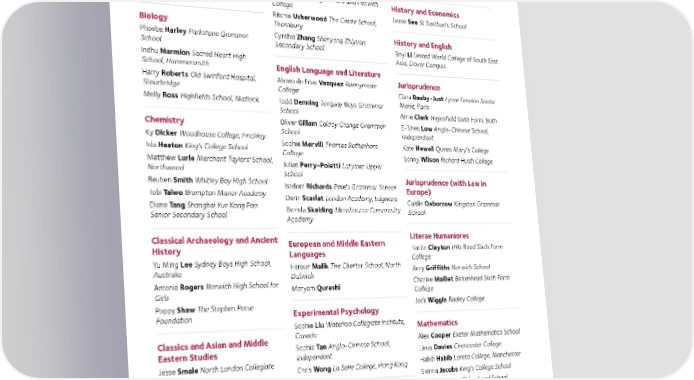 Diploma in Legal Studies Samantha Martin Bosworth Academy Undergraduate Students Christian Tambour Rheinische Friedrich- Vicky Mokumo Ark Acton Academy Entering College Wilhelms-Universitat, Bonn, Germany Thomas Morris Bedford Modern School Lucy Pollock Henrietta Barnett School Engineering Science Harry Stewart Dilley Kimbolton School Ancient and Modern History Zak Crane-Whatmore King Edward VI Madeleine Storer Urmston Grammar Nicholas Chan Abingdon School School, Southampton Yueshi Yang Mayfield School Helen Matthews Felsted School Callum Scott Reigate Grammar School Kirsten Silcox Coleg Gwent Ebbw Vale Jacca Smart-Knight Truro and Penwith History and Economics Campus College Ritchie Usherwood The Castle School, Jamie See St Swithun's School Biology Thornbury Phoebe Harley Parkstone Grammar Cynthia Zhang Shenyang Zhiyuan History and English School Secondary School Boyi Li United World College of South East Indhu Marmion Sacred Heart High Asia, Dover Campus School, Hammersmith English Language and Literature Harry Roberts Old Swinford Hospital, Alvaro de Frias Vazquez Runnymede Jurisprudence Stourbridge College Clara Bauby-Just Lycee Fenelon Sainte Molly Ross Highfields School, Matlock Todd Denning Torquay Boys Grammar Marie, Paris School Amie Clark Hayesfield Sixth Form, Bath Chemistry Oliver Gillam Calday Grange Grammar E-Shen Low Anglo-Chinese School, Ky Dicker Woodhouse College, Finchley School Independent Isla Heaton King's College School Sophie Mervill Thomas Rotherham Kate Newell Queen Mary's College College Sonny Wilson Richard Huish College Matthew Lurie Merchant Taylors' School, Julian Perry-Poletti Latymer Upper Northwood School Reuben Smith Whitley Bay High School Isadora Richards Pate's Grammar School Jurisprudence (with Law in Tobi Taiwo Brampton Manor Academy Europe) Derin Scarlat London Academy, Edgware Caitlin Oxborrow Kingston Grammar Diane Tang Shanghai Yue Kong Pao Brenda Skelding Mossbourne Community School Senior Secondary School Academy Classical Archaeology and Ancient European and Middle Eastern Literae Humaniores History Languages Hattie Clayton Hills Road Sixth Form Yu Ming Lee Sydney Boys High School, College Australia Haroun Malik The Charter School, North Amy Griffiths Norwich School Dulwich Charlee Maillet Birkenhead Sixth Form Antonia Rogers Norwich High School for Maryam Qureshi Girls College Poppy Shaw The Stephen Perse Jack Wiggin Radley College Foundation Experimental Psychology Sophie Liu Waterloo Collegiate Institute, Mathematics Classics and Asian and Middle Canada Alex Cooper Exeter Mathematics School Eastern Studies Sophia Tan Anglo-Chinese School, Linus Davies Cirencester College Jesse Smale North London Collegiate Independent Chris Wong La Salle College, Hong Kong Habib Habib Loreto College, Manchester School Sienna Jacobs King's College School History Jonathan Stam Birkenhead School, Classics and Modern Languages Merseyside Isobel Jessop Oundle School Francesca Bahadur Wyke Sixth Form Esme Waldman The Sixth Form College College Farnborough Computer Science Ella Delicate Bishop Veseys Grammar School Ben Carter Pate's Grammar School Nayel Huda Queen Elizabeth's School, Sheng Dong Beijing New Talent Academy Barnet Mahirah Rahman Barking Abbey School Saafia Jinadu North London Collegiate School 66