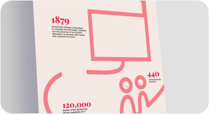 01 | Somerville in Stats OUR COLLEGE IN NUMBERS 1879 Somerville College is founded to 'include the excluded', holding out the promise of an Oxford education to anyone with talent and a passion to learn. 440 undergraduate students 120,000 books in the Somerville library, available 24-7 £735,000 in discretionary financial support given to students in 2020-21 04 |