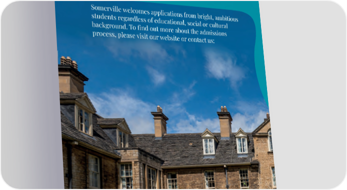 12 | Apply to Somerville Somerville welcomes applications from bright, ambitious students regardless of educational, social or cultural background. To find out more about the admissions process, please visit our website or contact us: 26 |